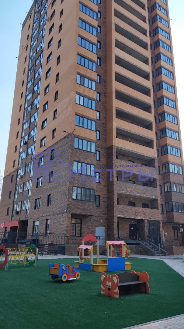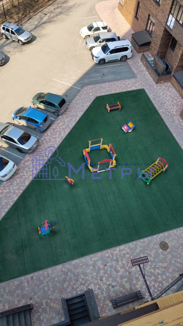 Территория дома огорожена металлическим забором с калитками и воротами, которые оборудованы домофонной системой. На огороженной территории дома расположены две современные детские площадки, мангальная зона и авто-парковка с достаточным количеством парковочных мест.