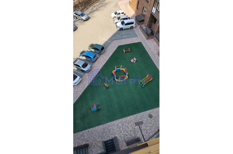 Территория дома огорожена металлическим забором с калитками и воротами, которые оборудованы домофонной системой. На огороженной территории дома расположены две современные детские площадки, мангальная зона и авто-парковка с достаточным количеством парковочных мест.